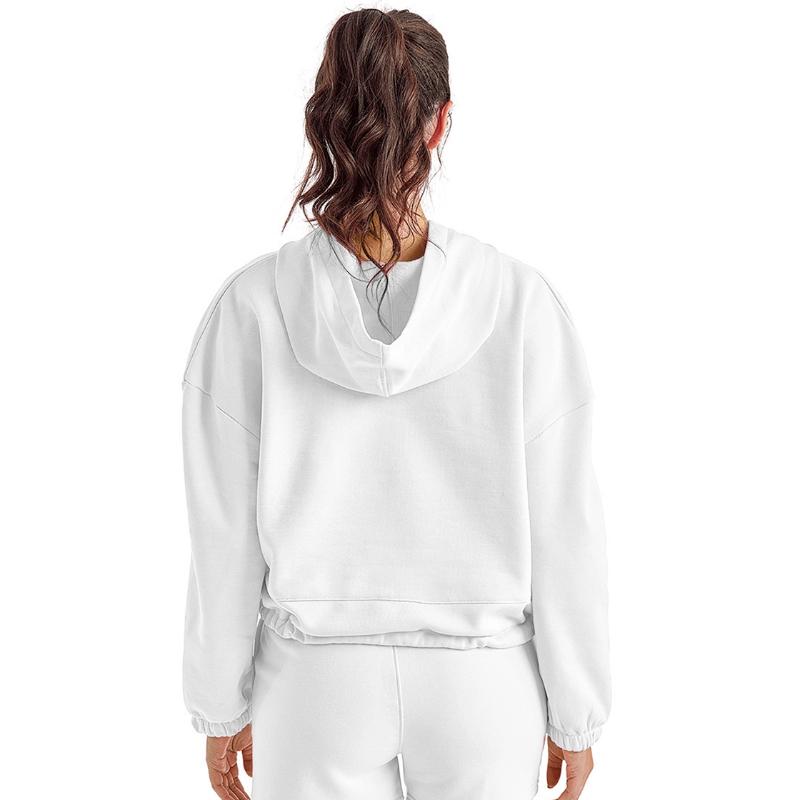 A must-have hoodie that’s both trendy and comfortable. The slightly cropped, oversized fit with a drawstring at the waist provides a flattering shape. Pair it with some jeans for a casual day look or with your best sweatpants for the ultimate loungewear.
